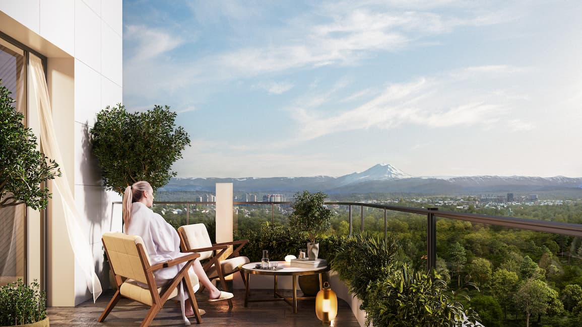 Солнце светит здесь почти круглый год — 295 дней в году, поэтому отличные виды гарантированы. Из окон высотой 2,2 метра и личных террас открывается живописная панорама Кисловодска, а также виды на Эльбрус, Боргустанский хребет и Новое озеро.