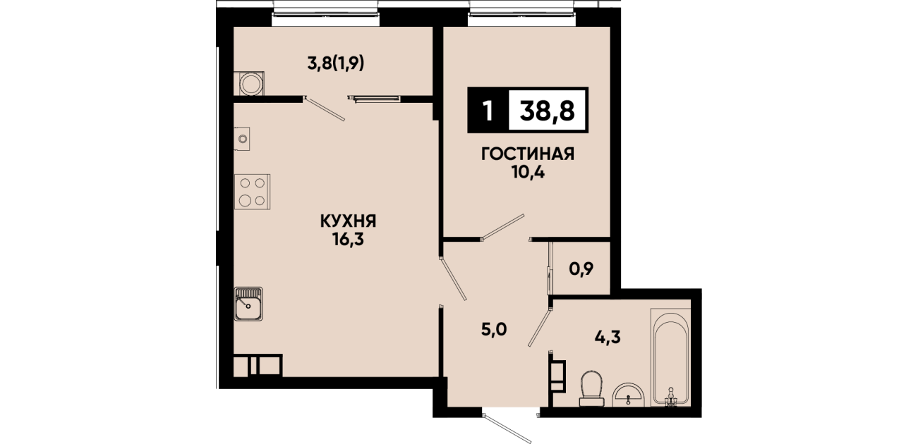 38,8 м²