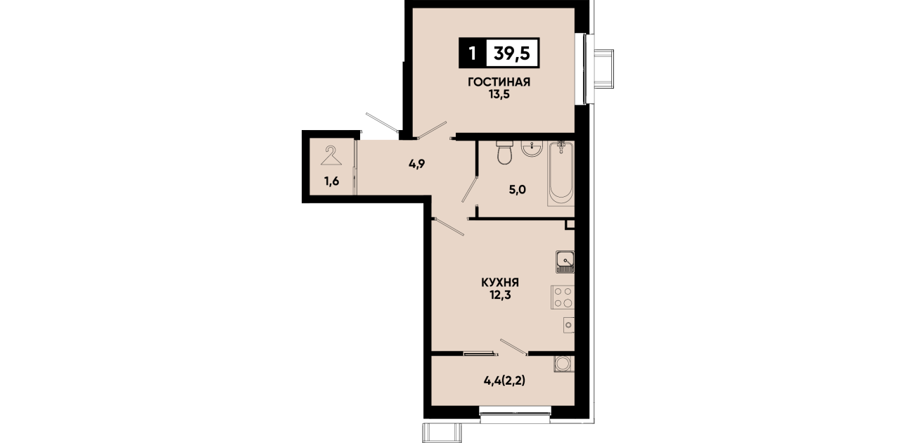 39,5 м²