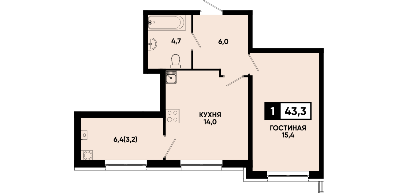 43,3 м²