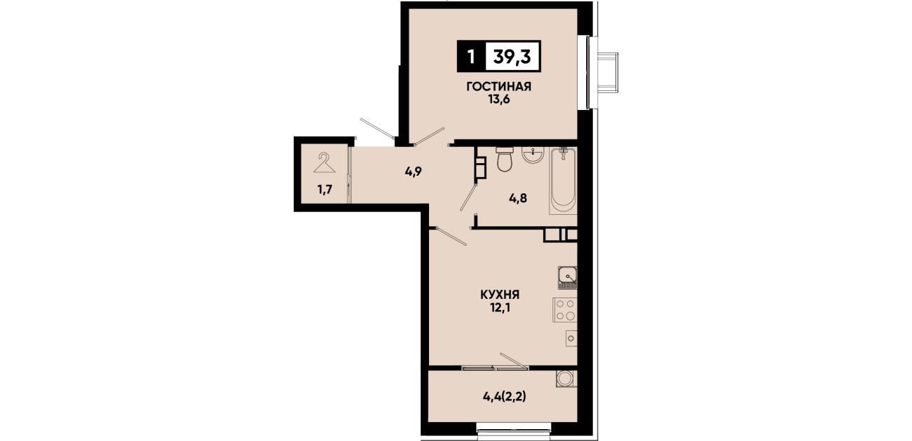 39,3 м²