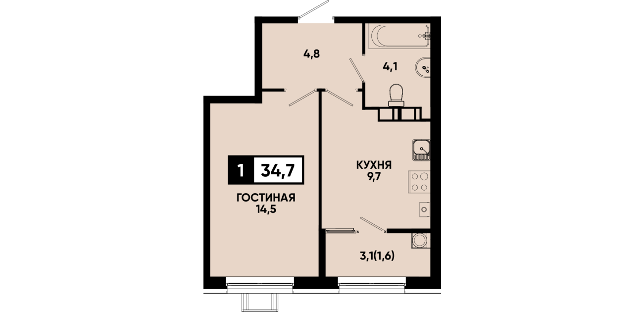 34,7 м²
