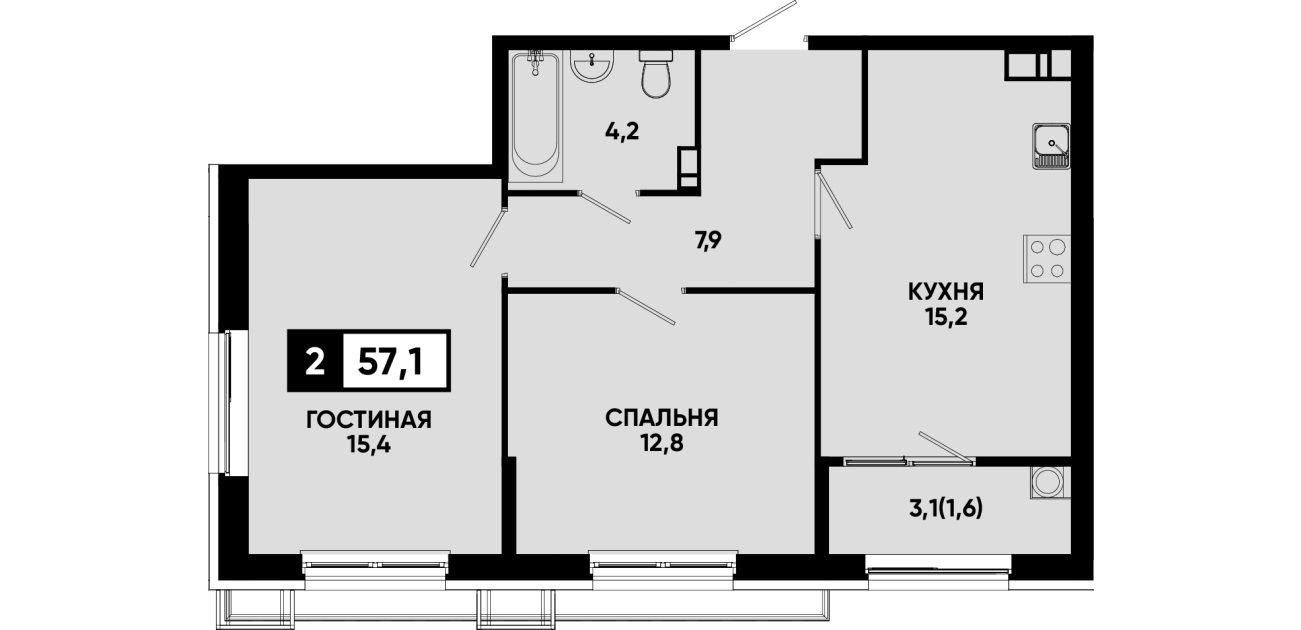 57,1 м²