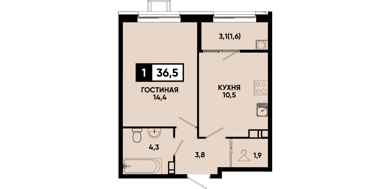 36,5 м²