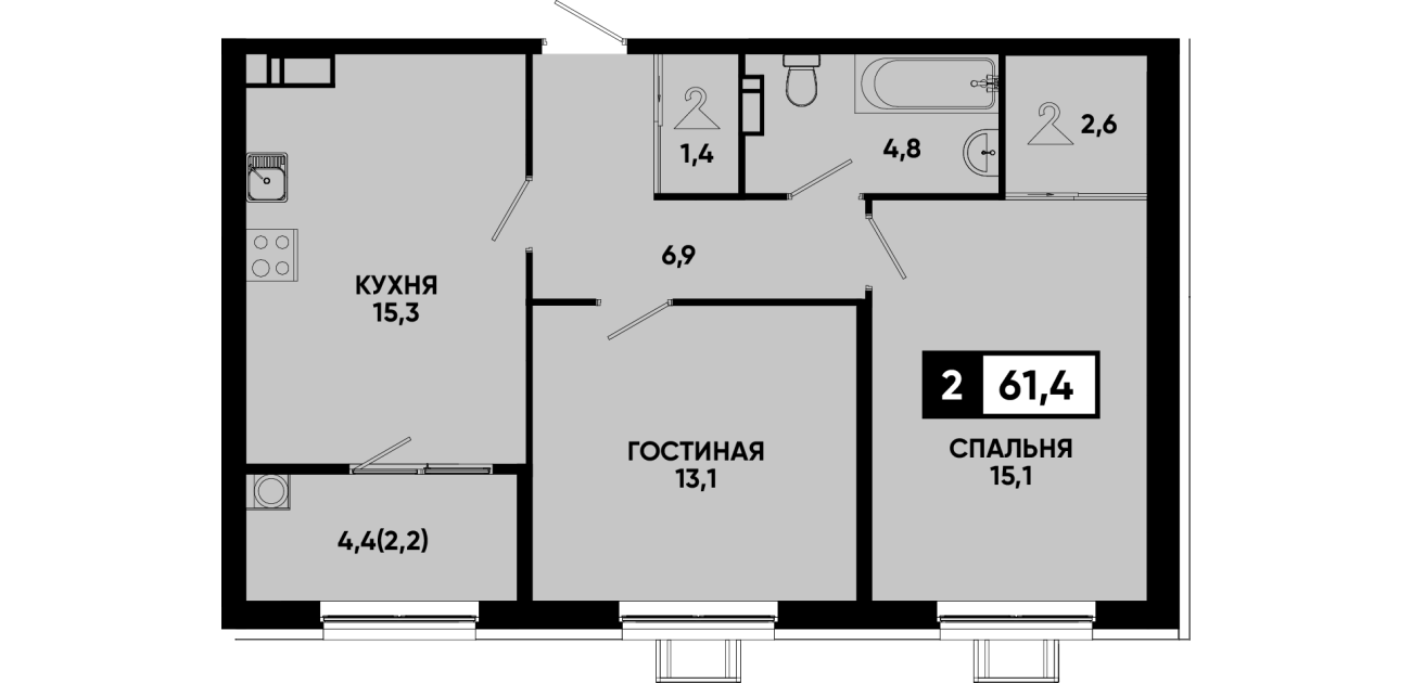 61,4 м²