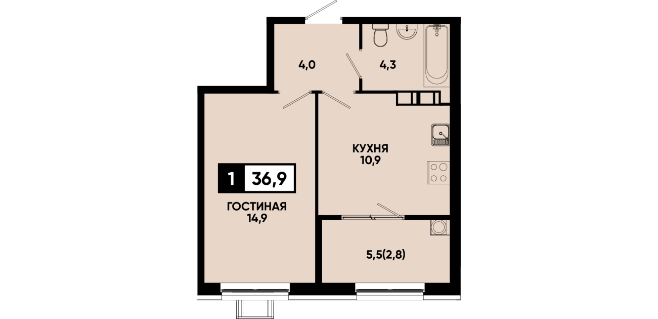 36,9 м²