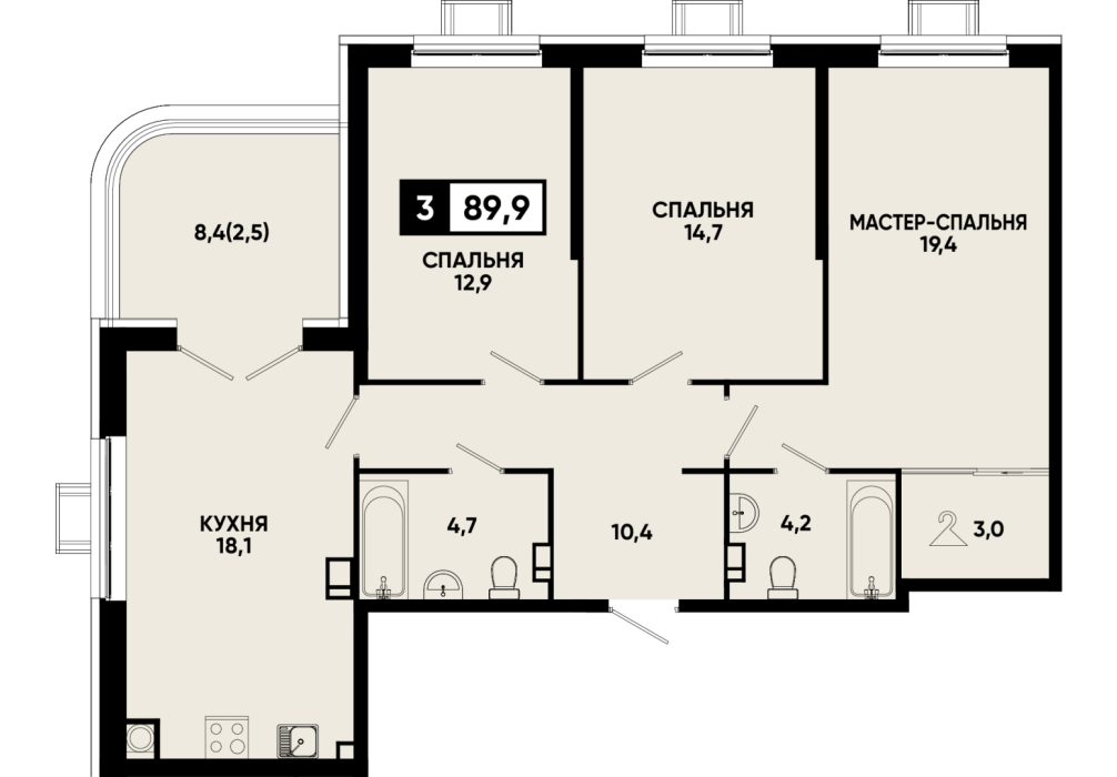 89,9 м²