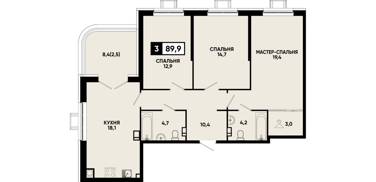 89,9 м²