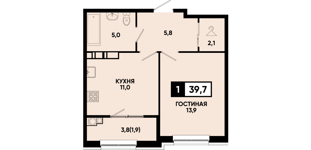 39,7 м²