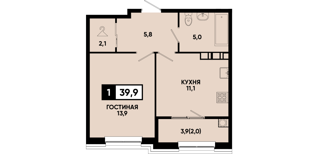 39,9 м²