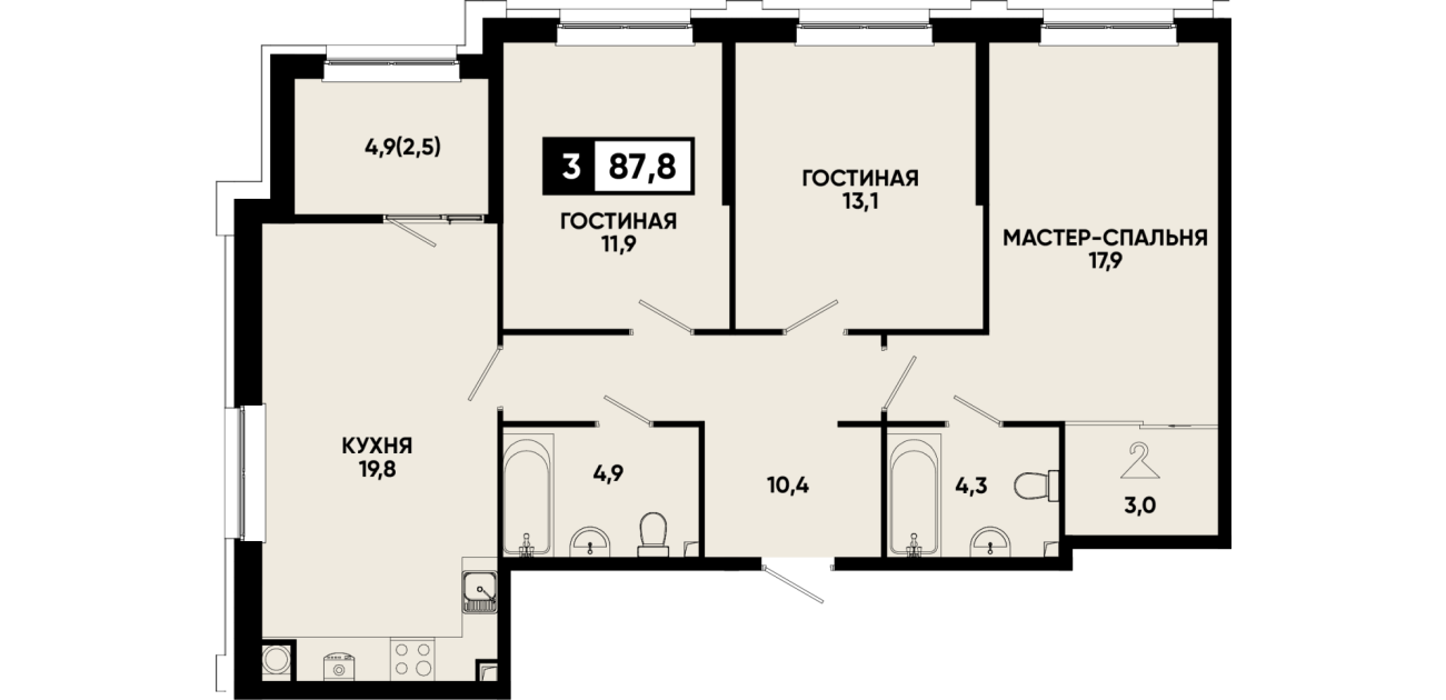 87,8 м²