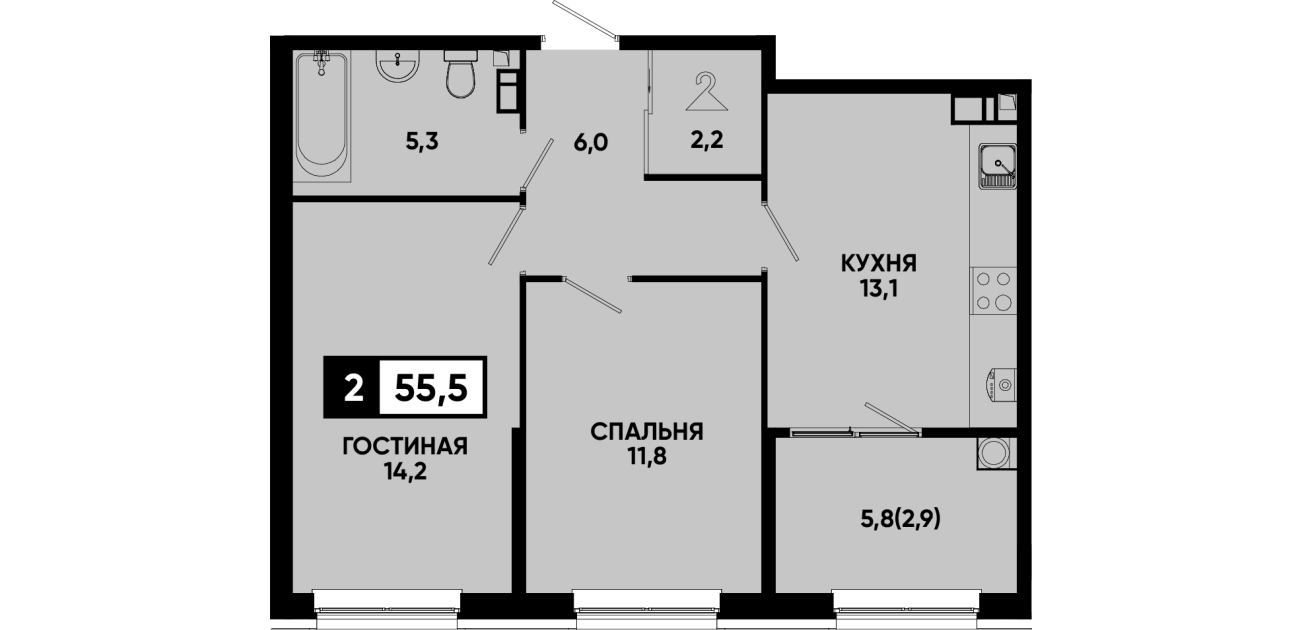 55,5 м²